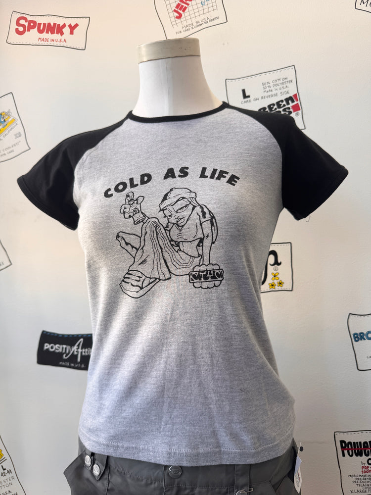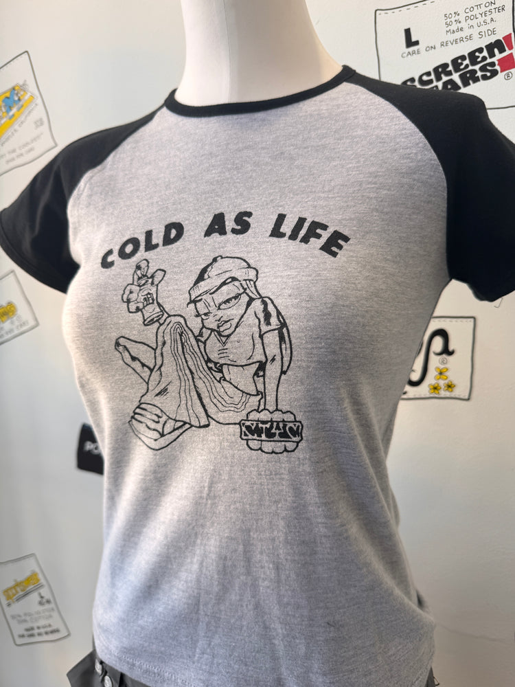 Insanely rare babydoll short sleeve Raglan from Detroit hardcore band Cold As Life. Sold at the Magic Stick Show in 2007 when they played with ALD (Almighty Lumberjacks of Death).