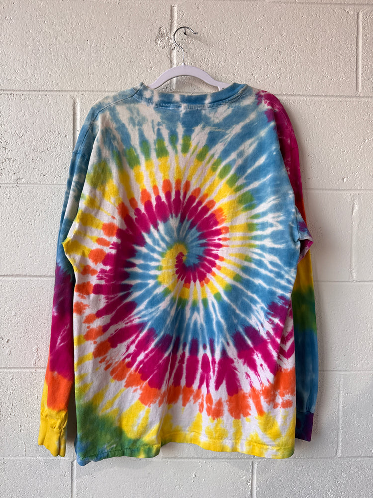 Mind-blowing long sleeve stoner tee that checks all the 90s boxes - tie dye, Dr. Suess, trippy print, subtle Grateful Dead reference, and that Anvil tag.