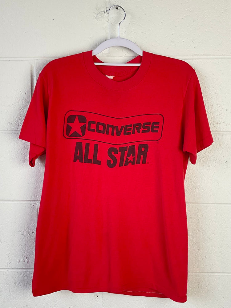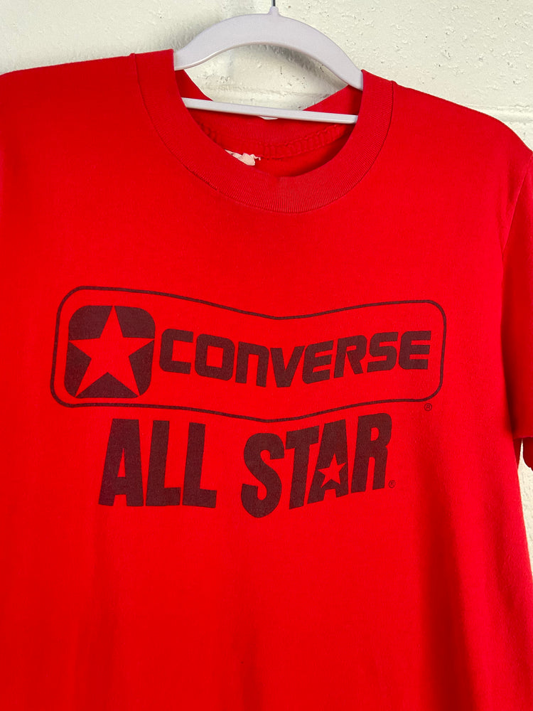 Your love for Chucks runs deep, that's why you need to wear that logo on your chest AND your feet. This late 70s Converse All Star logo T-shirt is a cool, rare find. Soft and worn with a narrow, single stitch hem.
