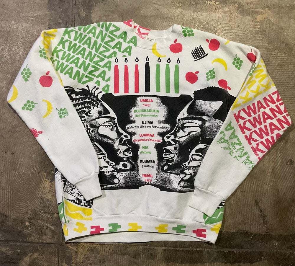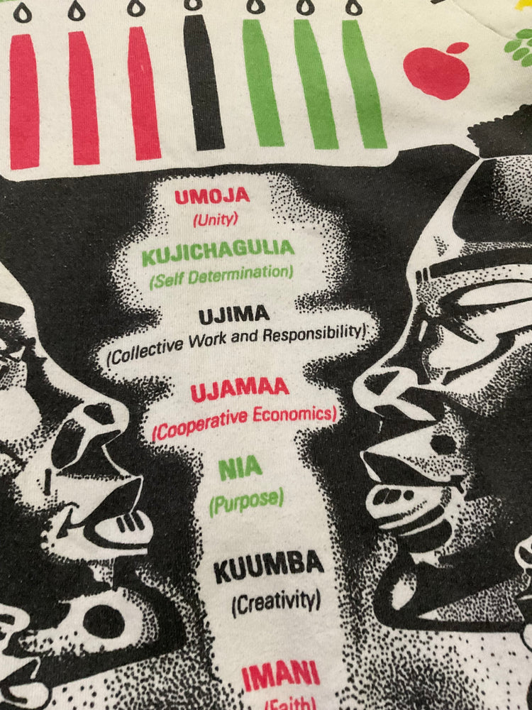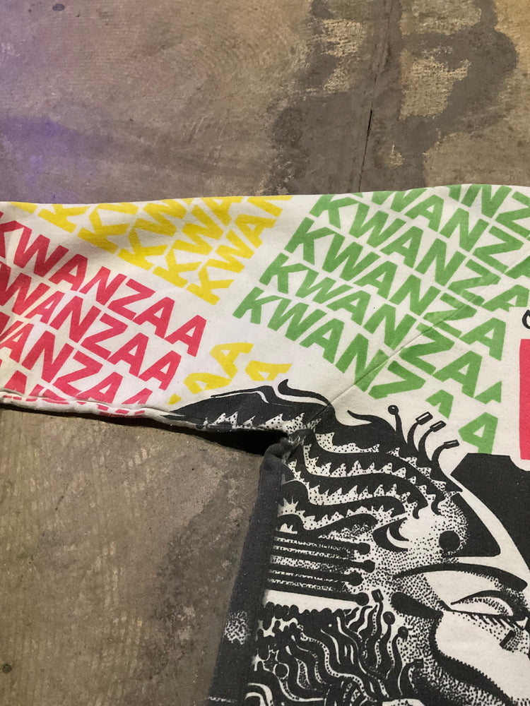 Insanely artful all over print Kwanzaa tee by James E Pate featuring the 7 principles. Subscript 1991