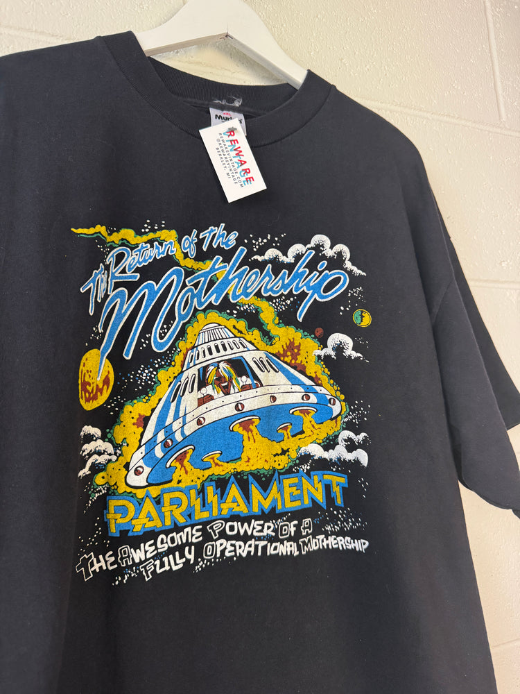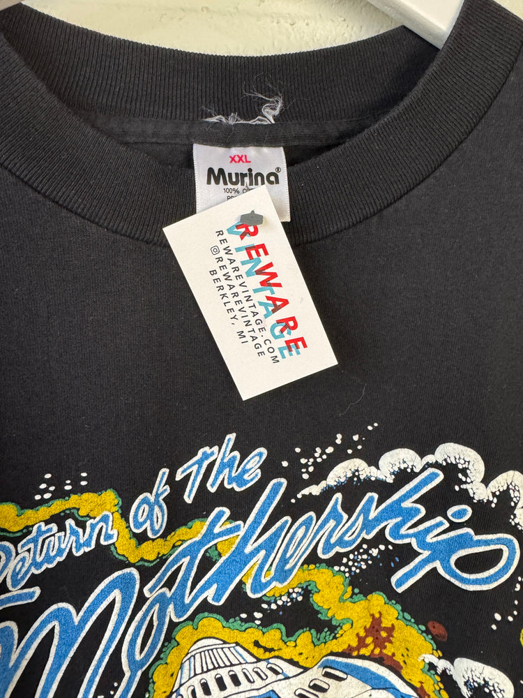 T-shirt from the George Clinton and the P-Funk Allstars 96-97 Mothership Reconnection Tour celebrating the 20th anniversary of the sighting of The Mothership (the 90s Mothership built for the tour is now at the Smithsonian). This shirt is crazy rare, and especially in this good of condition. Bought from original owner who was a friend of George Clinton's in that era.