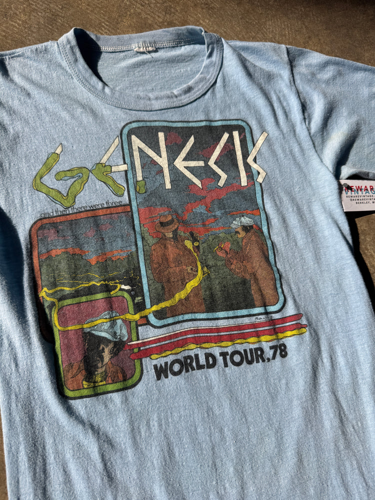 Steve Hackett left Genesis in 1977, so the remaining members named their 1978 album and tour "...And Then There Were Three...". This shirt from the tour is incredibly soft and a very rare find!