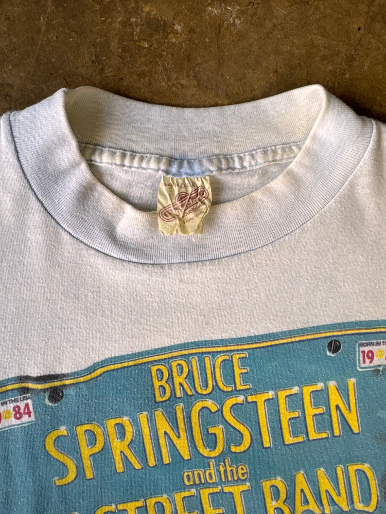 Pink Caddy & license plate graphic w/ tour dates on back. This was a blue shirt that was bleached out over most of it, but some blue still lingers on. From the largest collection of Bruce Springsteen shirts we've ever had in 20 years, and all from one very devoted fan.