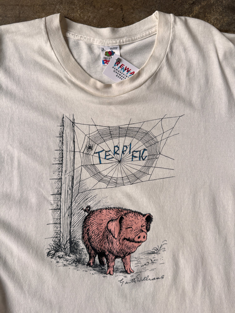 Your inner child is gonna love this shirt! Charlotte's Web shirt with Garth Willams illustration from the book, on a creamy white tee.
