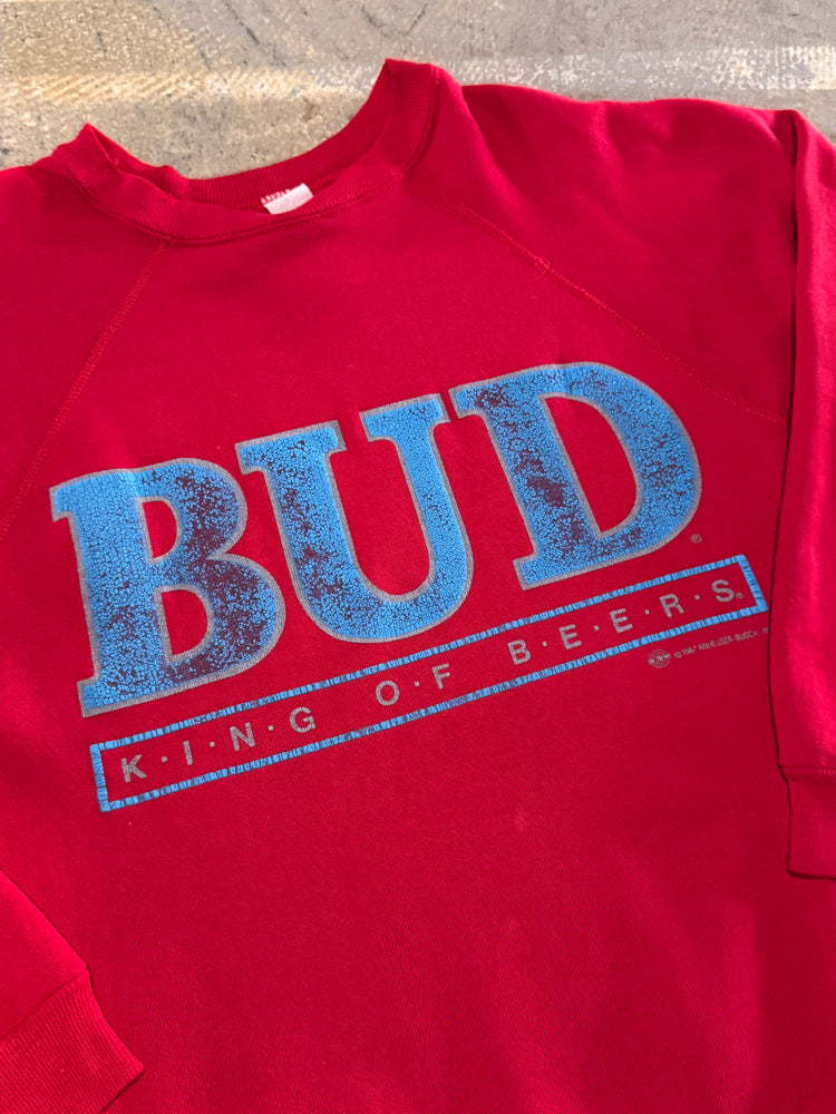 Bud is the King of Beers, and this is the king of all sweatshirts in our shop right now. Perfectly worn and soft, subscripted 1987.