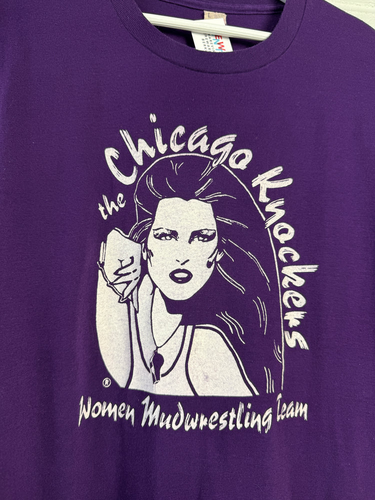 The Chicago Knockers were America's premier female mud wrestling team of the 80s and this Nagel-inspired tee is the ultimate souvenir of the Chicagoland team. Screen stars tag too!