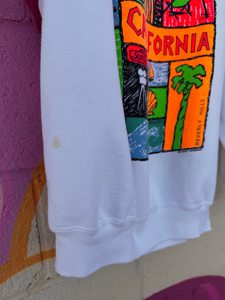 1980s California tourist sweatshirt with a bright & fun print of lots of CA's favorite spots. Jerzees brand, made in the USA