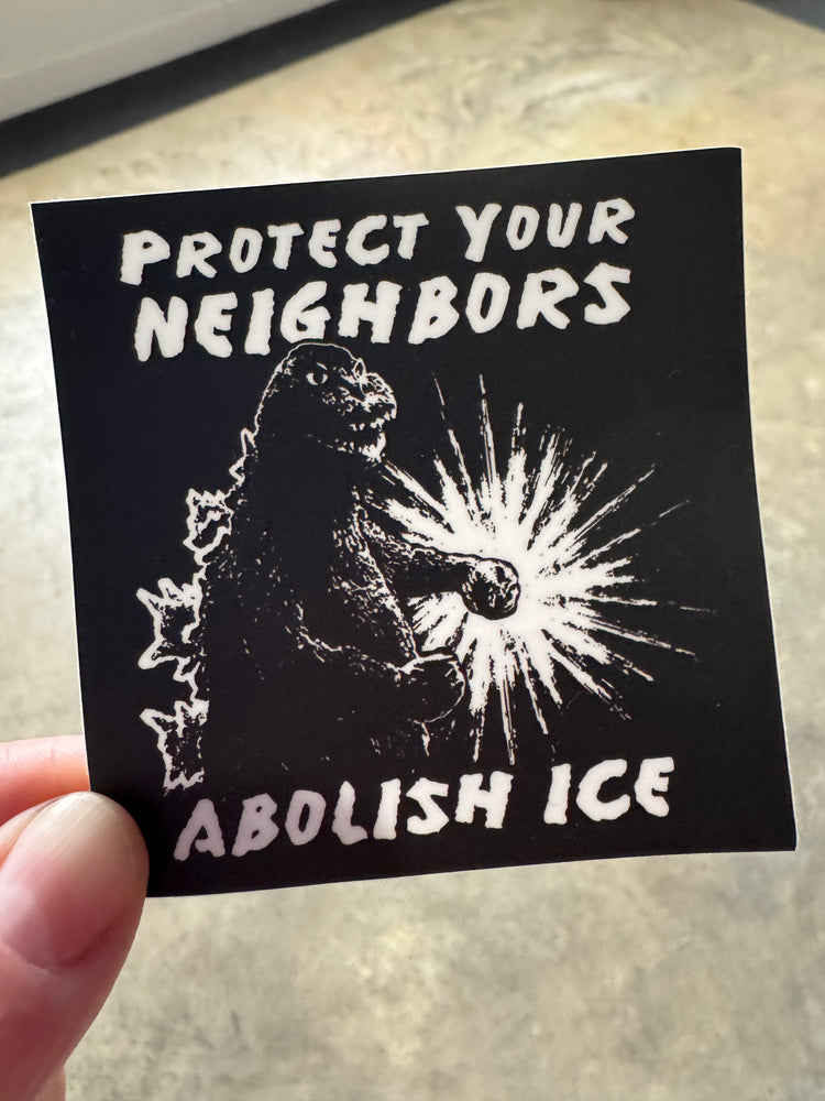 Thanks to Alternate Histories for sharing this art and the opportunity to make these 3 x 3 inch stickers! For each sticker sold, we will $2 to the National Immigration Law Center in Chicago. Dishwasher and weather proof.